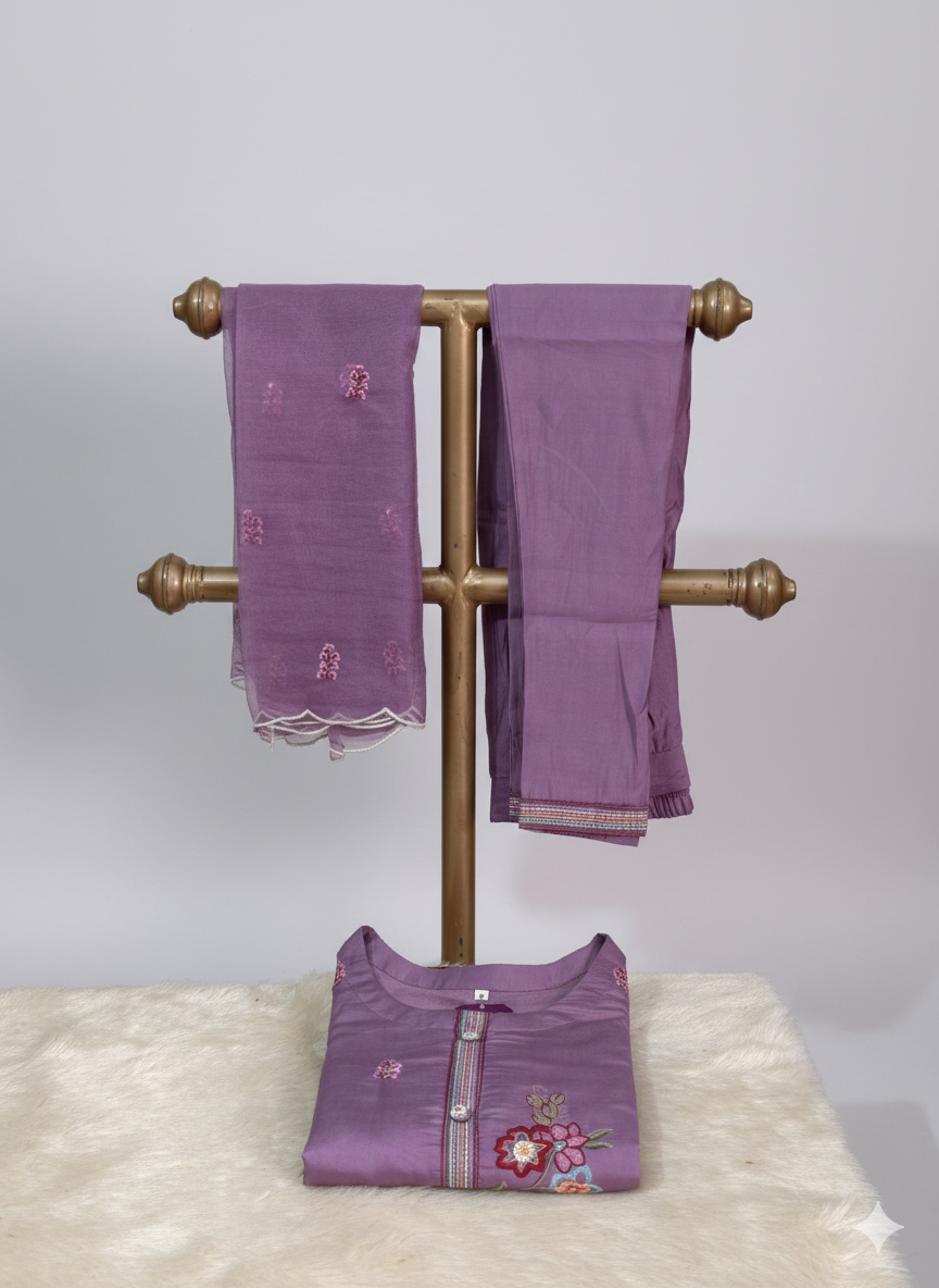 A traditional outfit set that includes a kurti, bottom, and dupatta. Perfect for festive occasions, family gatherings, and celebrations.